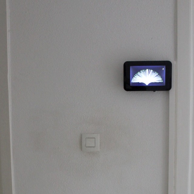 Et voilà un petit écran tactile pour contrôler ses différents éléments ! Vérifier la température de ses pièces, allumer sa télévision à distance, lancer une playlist … Tout est possible !